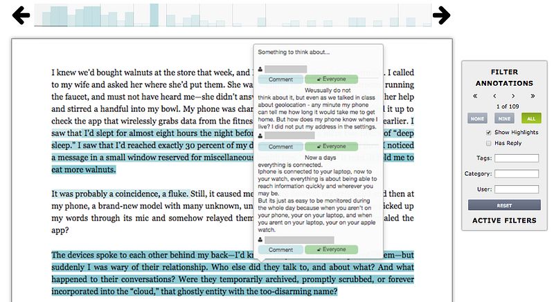 Critical reading is an essential skill for participants in the civic dialogues and workplaces of the 21st century. Digital annotations are a novel data source for making visible these reading strategies. This work presents a step towards critical reading analytics by collecting digital social annotations and identifying student critical reading strategies across a diversity of college settings and texts. We synthesize prior research on critical reading to develop a data-driven, taxonomy of critical reading strategies. We then hand-code a sample for an exploratory analysis of student use of a digital social annotation tool.
